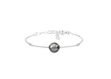 Iza-B - Bracelet en argent 925 rhodié, une perle de Tahiti de 10/11mm et quatre diamants de 0,020 ct en sertis clos sur la chaîne forçat.