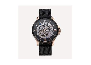 Cette montre automatique squelette et extra plate est animée par un mouvement dont on peut apprécier la décoration squelette à travers un cadran minimaliste orné de chiffres. Une approche luxe et atypique pour une création offerte à moins de 300 euros.