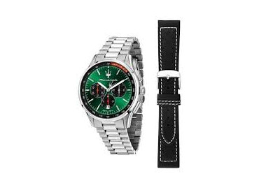 La montre Le boitier en acier inoxydable (316L) d'un diamètre de 43mm est orné d'une lunette tournante unidirectionnelle verte et dorée avec...