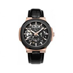 De l’art du détail : un mouvement finement décoré que l’on aperçoit derrière un cadran semi-squelette ; des index aux contours en relief, ponctués...